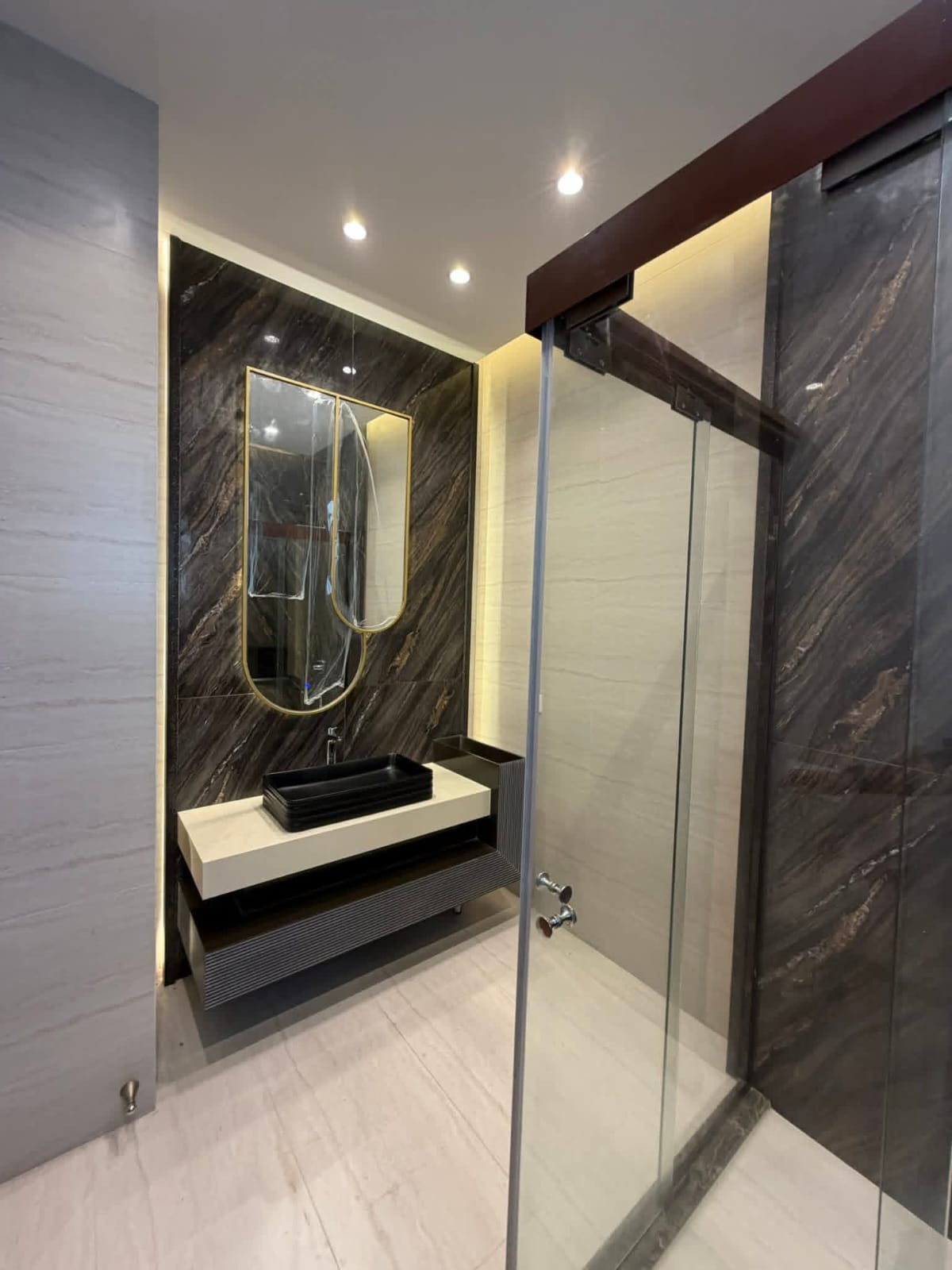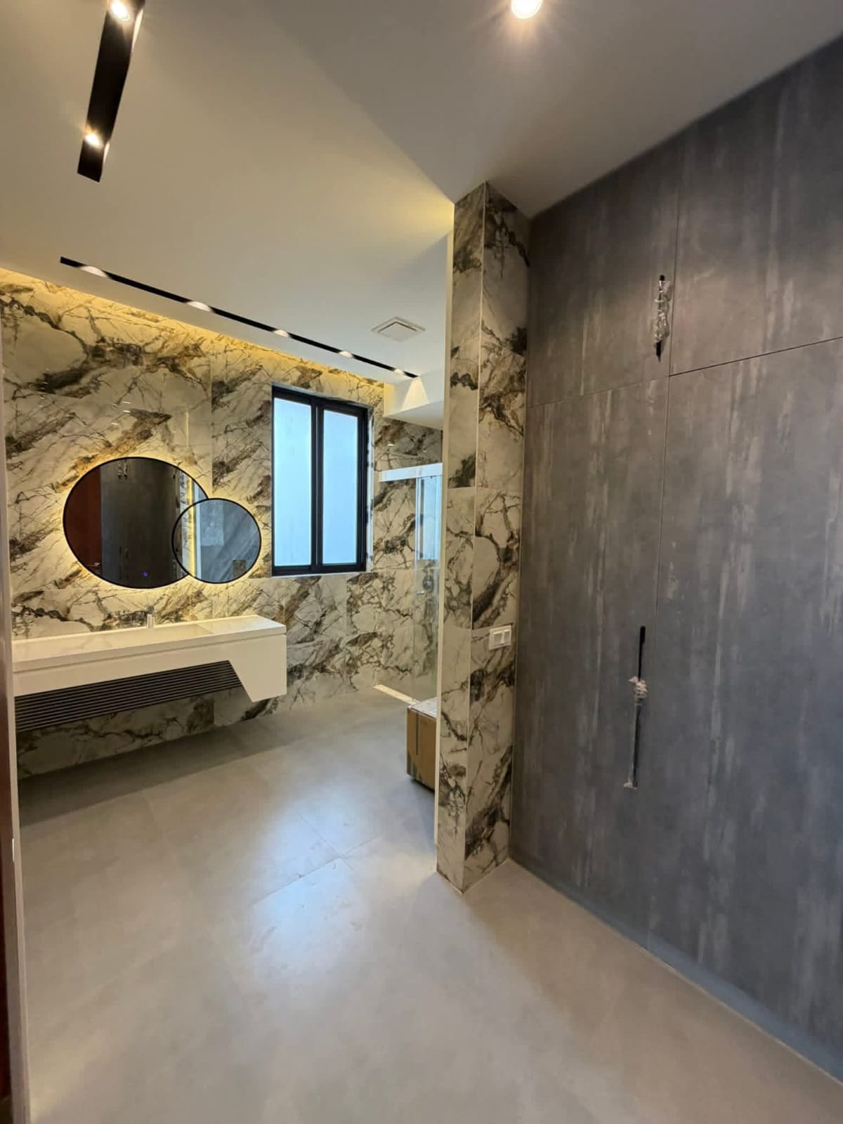 تنفيذ غرف دريسينغ من MDF بلون لاتيه لامع يمنح المساحة مظهرًا عصريًا وأنيقًا، مع تشطيب عالي الجودة يعكس الإضاءة ويعزز الإحساس بالفخامة، إضافةً إلى توزيع عملي يوفّر أقصى استفادة من مساحة التخزين.